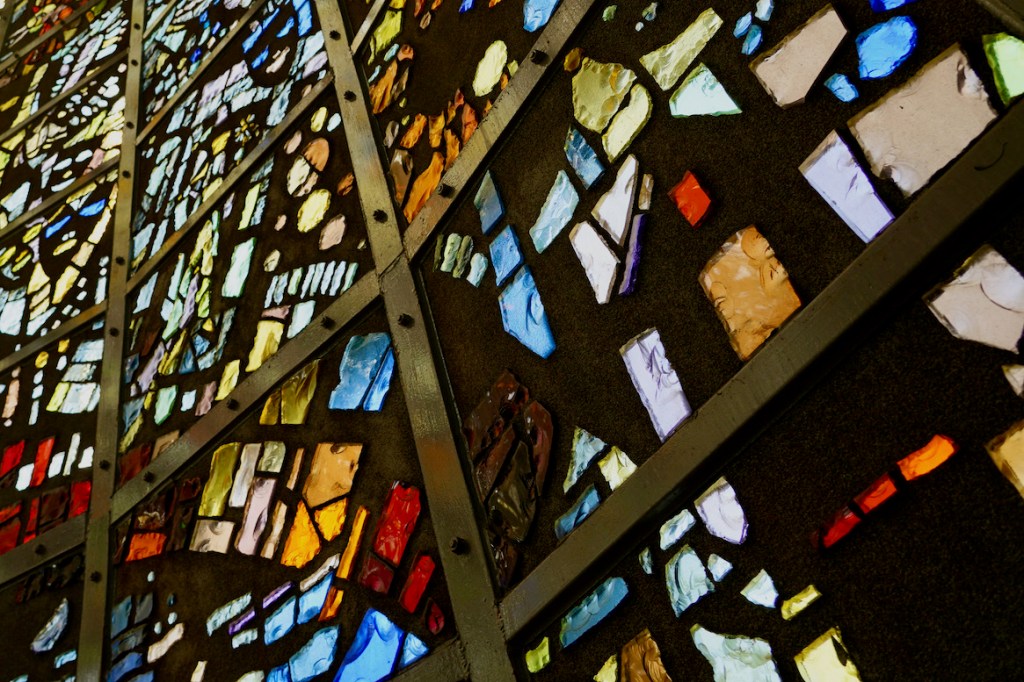 Rising high in the park is the towering ‘Symphonic Sculpture’. Museum blurb told me it’s “18 meters tall and 8 meters in inner diameter and features stained glass formed from 2 to 3-cm thick glass fragments that were broken with a mallet.” The outside light coming through these fragments creates a wonderful world of colour. If you are able, climb up the spiral staircase and out onto the balcony for a great view over the Hakone Open-Air Museum and the Hakone mountains. Sorry, there is no elevator!
