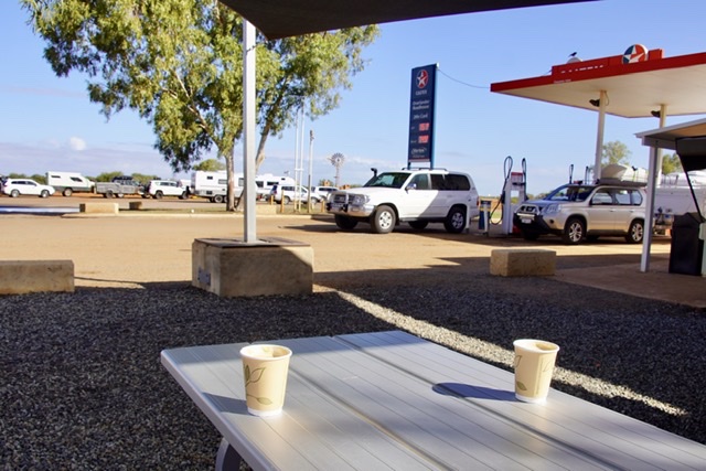 This is an area of Australia where you drive hundreds of kilometres without seeing a building. And when you do see one, it’s likely to be a Roadhouse .. basically a service station with a small convenience shop, public toilets, and sometimes some very basic accommodation. We pulled into one – the Overlander – for morning coffee. Diesel cost close to 150 cents a litre…unleaded petrol 150.9! Lucky our tank still has plenty of fuel, though prices will increase the further north we travel.