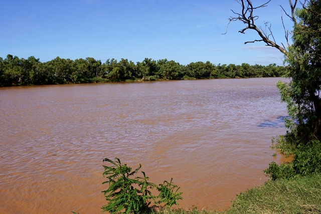 Another unusual sight I’m seeing on this visit to Carnarvon is water flowing in its river! The Gascoyne River stretches inland for 865 kilometres, and by the time it reaches Carnarvon on its way to meet the Indian Ocean, much of its vast river bed is often empty. However, a cyclone a few months back and recent heavy rains have flooded much region, and the river is flowing strongly. The Gascoyne is known as an upside down river. For much of the year water flows below the dry river bed. So effectively, the river is a massive water storage system for aquifers below the desert sands.