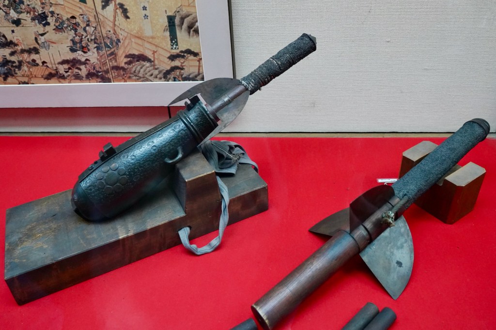The second floor of the main keep features a gun museum, Teppo Gura, with an interesting collection of guns and other quite frightening weapons from Samurai times. I’m not sure how they weilded their swords wearing all that armour – though apparently a lot of effort went into the design to make it flexible for the wearer.