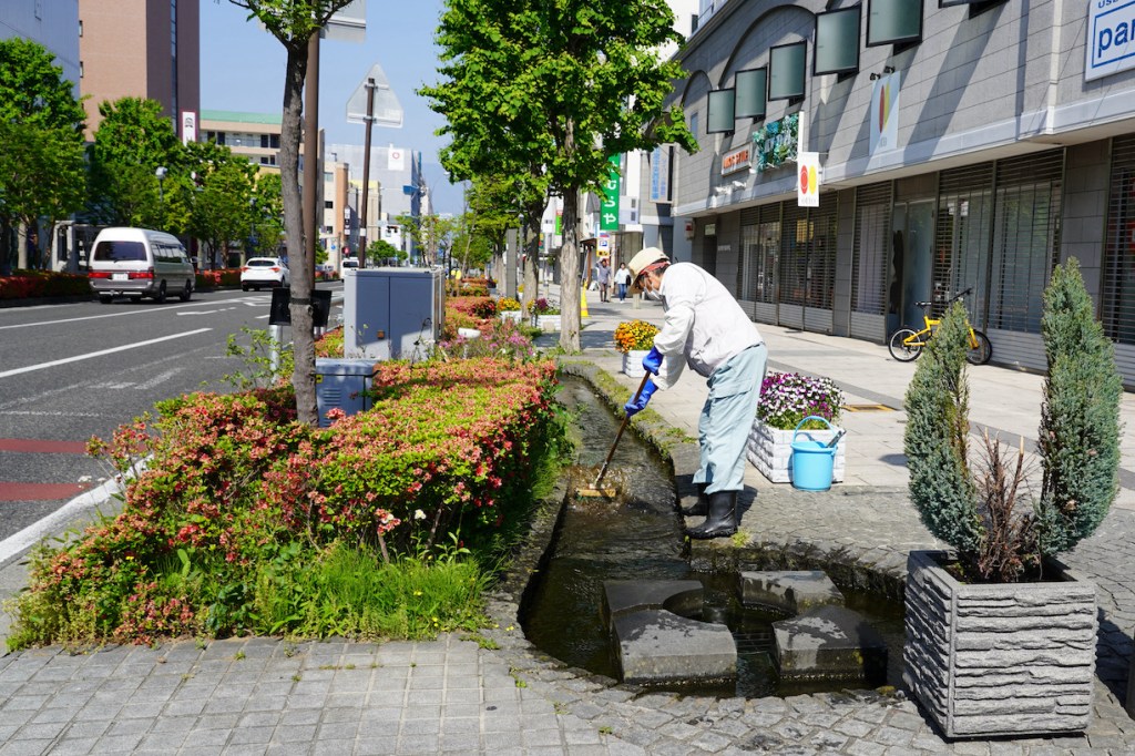 The first thing I noticed on arrival at Matsumoto railway station was that this is a city of flowers, and that immediately puts you in a relaxed mode. The street scape was full of flowers and beautiful shrubbery. It was spring, and many beds were being planted, while others were already flourishing. Small streams ran through major streets, and workers were hard at work to ensure they were kept clean. This is an immaculate little city.