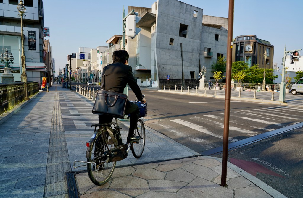 As my Matsumoto early walk progressed, workers began appearing – some walking, some cycling. Seems you can cycle on the footpaths there.
