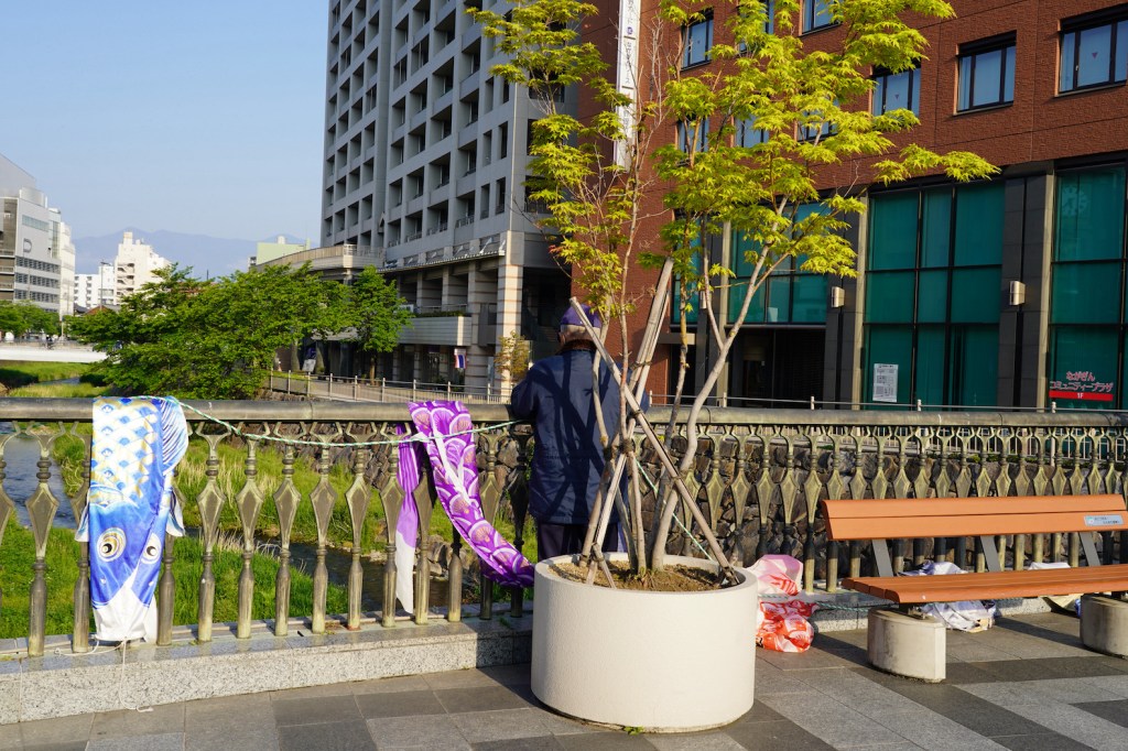 As I crossed back over the river, a man already at work removing windsocks in the shape of carp fish from the bridge. They had been there to mark Children’s Day – a National holiday held every May in Japan to celebrate the health and happiness for children. Koinobori (carp) flags and kites are flown throughout the country as part of the celebration.