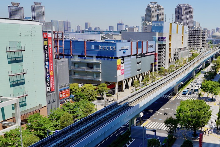 To be clear, this is not a monorail. The Yurikamome runs on rubber tyre wheels on elevated tracks, guided by side walls. And it is a treat in itself, offering wonderful panoramic views en route. For me, I was well and truely in the futuristic world I’d dreamed of in my baby boomer youth.