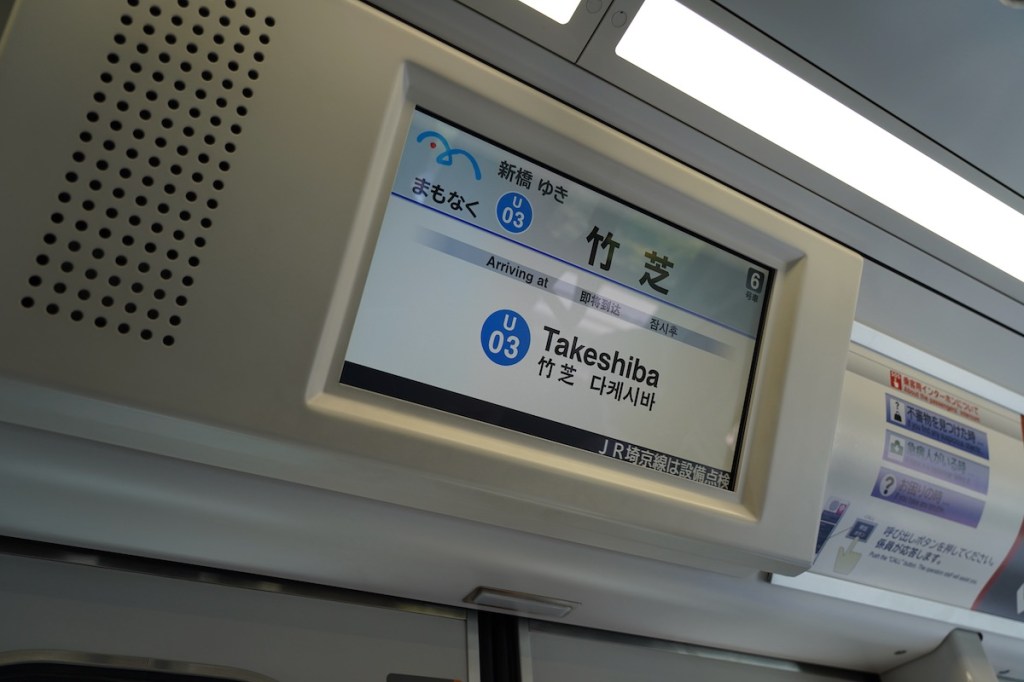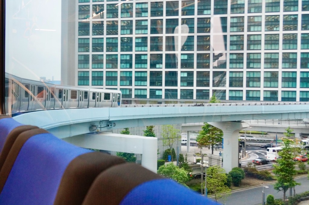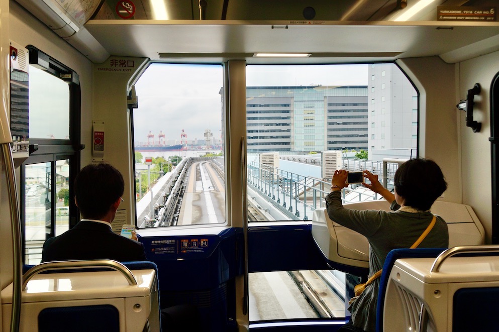 It’s not a long journey, and there are plenty of stops en route to hop on/hop off. The very best seats are the front seats – where the driver would usually sit on a train! So aim for them if possible. The trains run every five minutes on weekdays and every four minutes on weekends, so it’s worthwhile to wait for the next one to try to secure a front seat. I advise a weekday ride when there are less crowds. The main Yurikamome terminus is above ground across a small forecourt just outside the east side of the JR Shimbashi Station. There are plenty of direction signs in English, so it’s all fairly easy to locate.