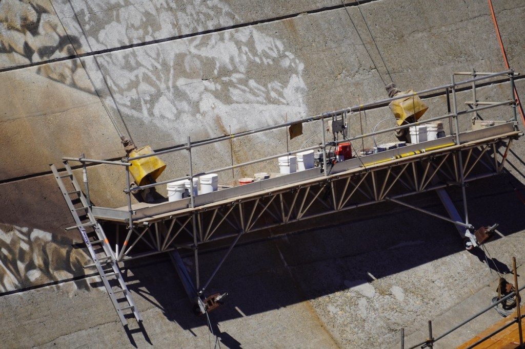 To complete the painting, floating platforms and abseiling ropes were included amongst the work day tools!