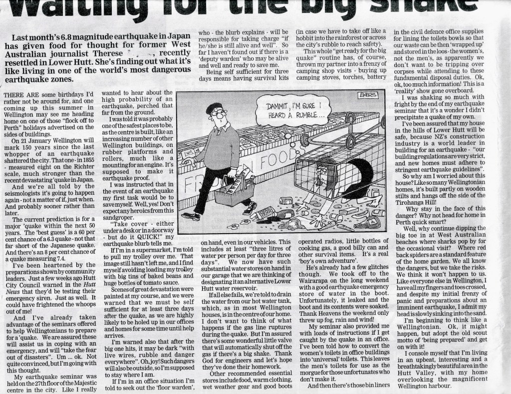 None of this has stopped me going to New Zealand and Japan. They are both fabulous countries to visit. Wonderful tourists destinations. After-all, I could trip over my own front door step with disastrous consequences or bump into a kangaroo on my morning walk!