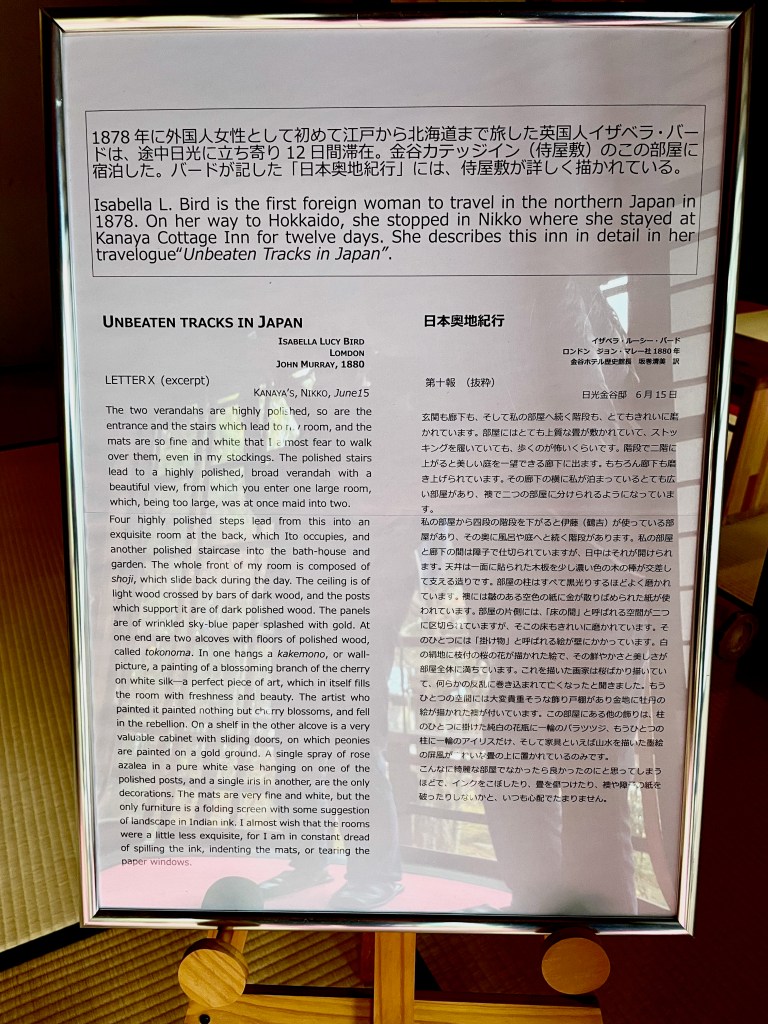As one sinks into old age, the opportunities to make a difference become limited, and I question my relevance. So, I have been thrilled to hear I have made the tiniest of difference to the Kanaya history museum in Nikko, Japan – the exquisite little Inn my travel hero, writer and explorer ISABELLA BIRD stayed at in 1878 with her young Japanese guide Ito Tsurukichi.