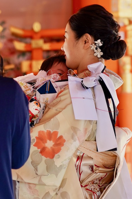 While we were at the Shrine, we were fortunate enough to see a special ceremony for a young baby. I’m not quite sure what it was about, but it seemed akin to a christening ceremony with his parents and family around him.