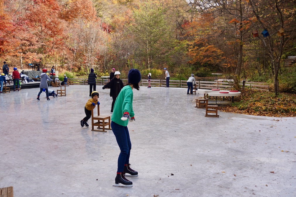 When we arrived early in November, the pond by the visitor centre was already iced over, transformed into a skating rink for the oncoming winter. Very popular! You can hire skates there, and ‘skating’ chairs are provided to support those who are not good at skating – great particularly for kids.