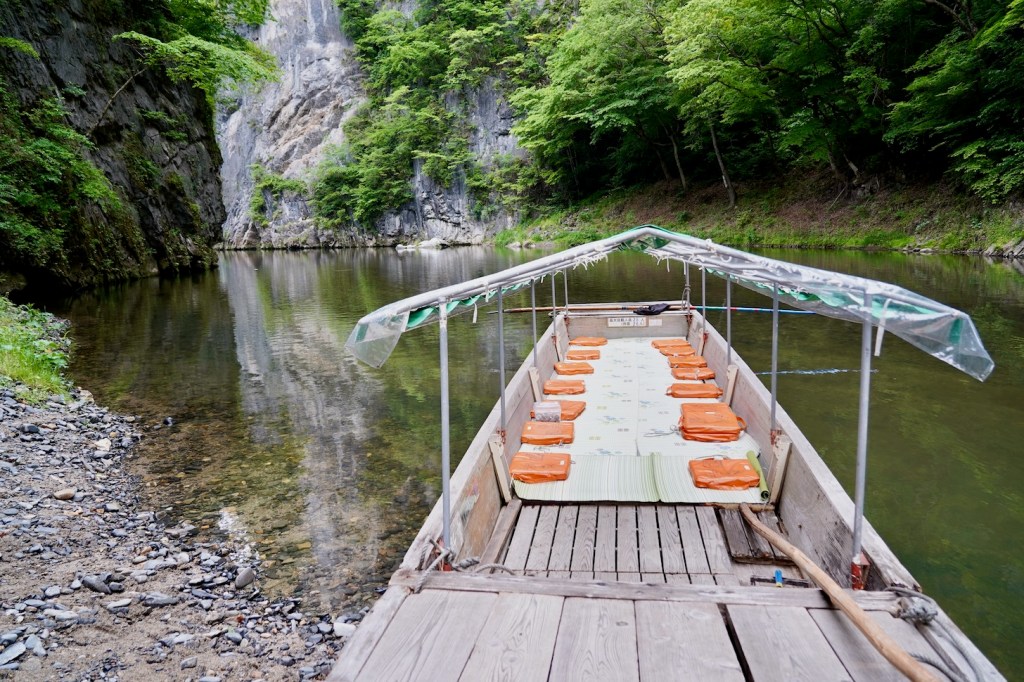 The challenge I faced with my crappy knee at Geibikei Gorge in Japan’s Iwate prefecture was figuring out how I would get down to a sitting position and up again from the floor of a flat bottom boat ferrying visitors through the Gorge.