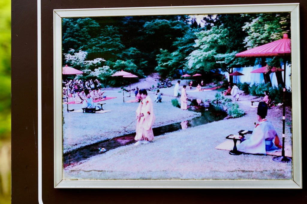 My first glimpse of an ancient Heian period Japanese pure land garden was a poster I spotted in Ichinoseki, a city in Japan’s Iwate prefecture. It showed people dressed in ancient garb, enjoying the outdoors by a pretty stream. The scene invited you in, evoking feelings of peace, happiness, relaxation and tranquillity. Heaven.