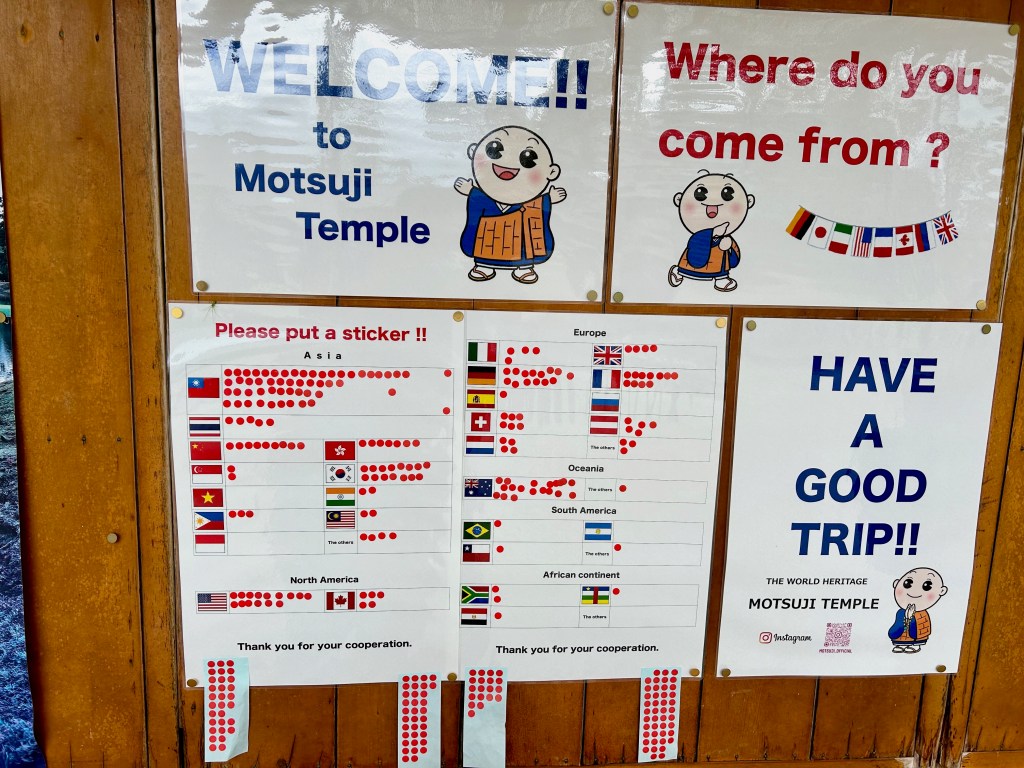 Morsuji invites visitors to record their home countries on a board near the Main Hall. Taiwan seems to be leading with the most visitors. The Australian flag represents Oceania – quite a stretch as Oceania includes more than 20 countries with their own flags. Others? Has to be New Zealand. No self respecting Kiwi would put their dot under the Aussie flag!