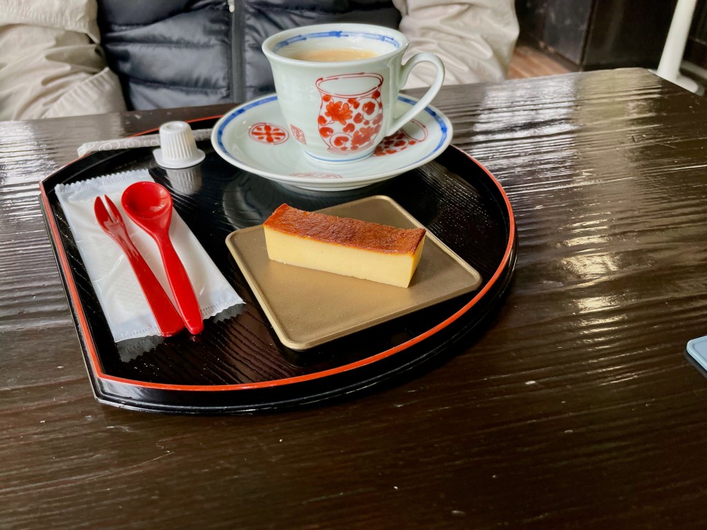 Near the exit/entrance is a small cafe called Shofuan, specialising in soba noodles and sweets. We decided on coffee and desert – MJ bought a cheesecake, and I bought ice-cream, with little filled biscuits and strawberry dressing. We were celebrating our good fortune in finding this very special pure land garden.