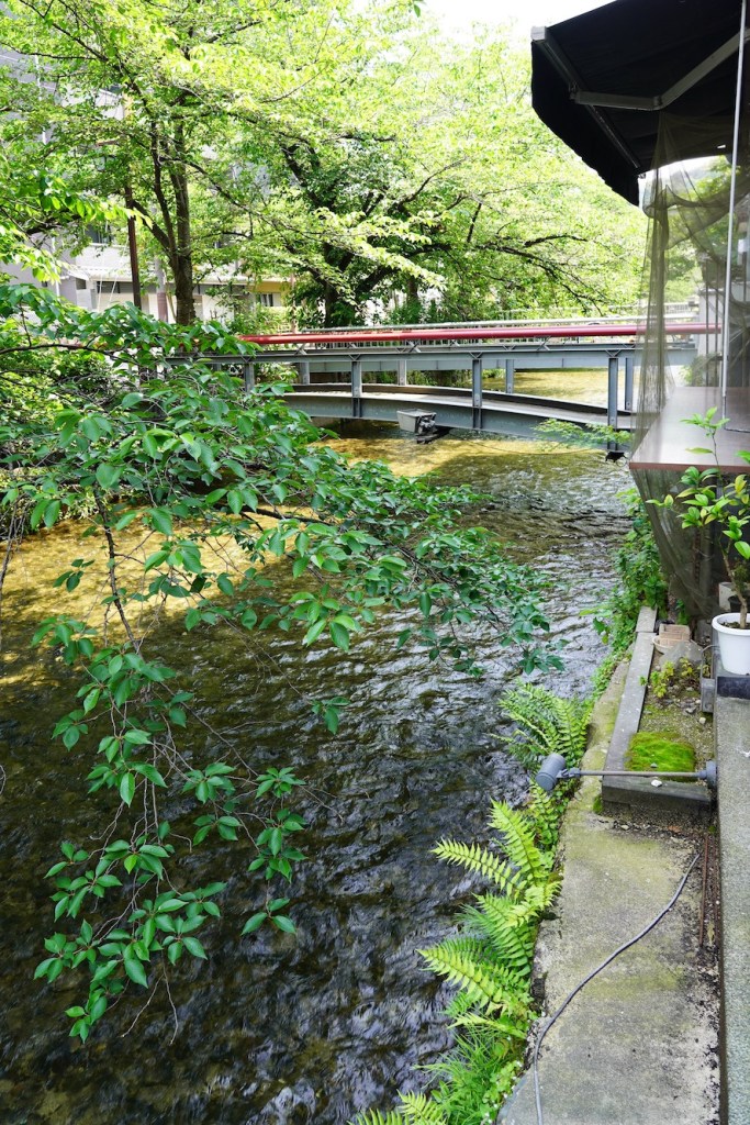 Hotel Mume calls itself a ‘small and enchanting’ hotel. It sites besides the picturesque Shirakawa River – more like a lovely little canal -and it promises that once you ring the bell next to its red door, you will relax and enjoy your stay. Intriguing. I love red doors. I’ve never seen one at a hotel! It beckoned me – like the mysterious hole Alice in Wonderland chased the white rabbit down!
