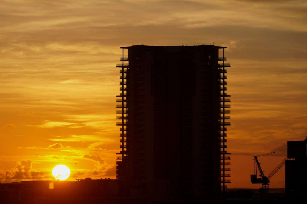 The silhouette of an apartment block and a crane helped out my sunrise shot from my hotel window on a visit to Darwin in the Northern Territory.