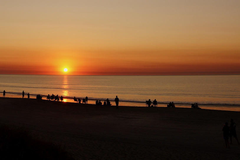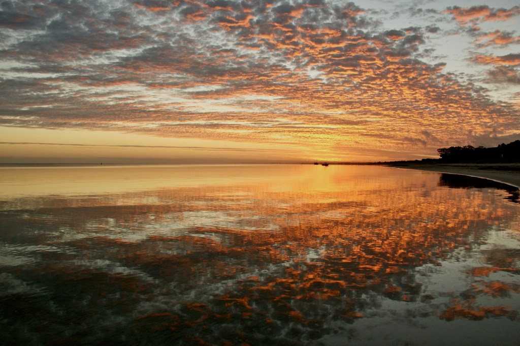 Eighty Mile Beach in the Western Australian Pilbara region has both fabulous sunrises and sunsets. There is nothing else at Eighty Mile except the beach and a caravan park – and the most wonderful experiences with the sun! The nearest town north is Broome – nearly 4 hours drive away. And to the south, Port Hedland – about 2 hours/40 minutes drive away. Early morning beach fishers and the occasional walker can be spotted along the beach at dawn. And in the evening, people staying in the caravan park gather on the beach with their chairs and beverage of choice to watch the sun going down.