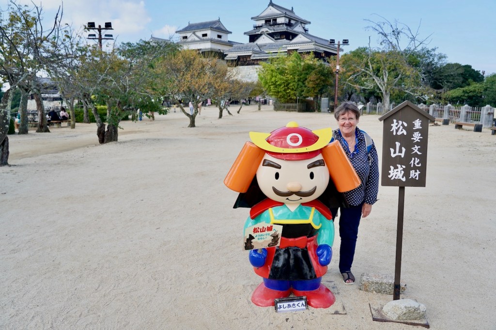 I visited on a day trip last November with husband MJ and our Canadian friend Sandy, travelling by rail from Shikoku’s Takamatsu city to Matsuyama – the capital of Ehime Prefecture in western Shikoku.