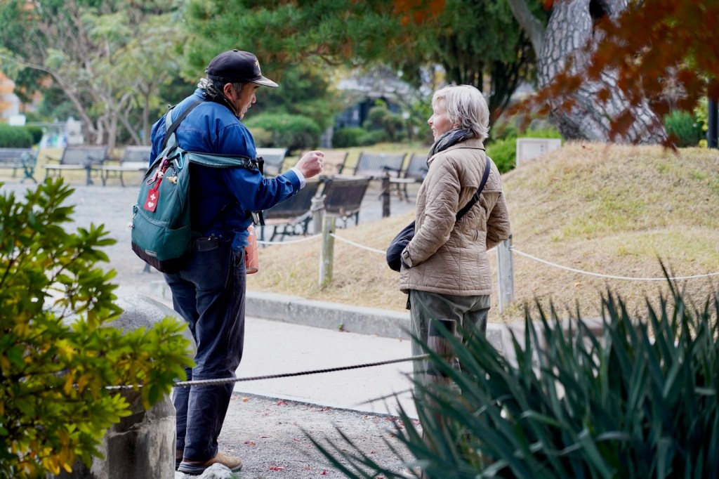 I walked from our hotel to the castle just after dawn with our travelling companion Sandy, and we met a most interesting man there. He was disabled, and had difficulty speaking – but he was very knowledgeable and had an excellent command of English. I don’t know if he had suffered a stroke or had been badly injured in an accident. But he was very kind and wanted to tell us some of the must see features of Matsumoto.