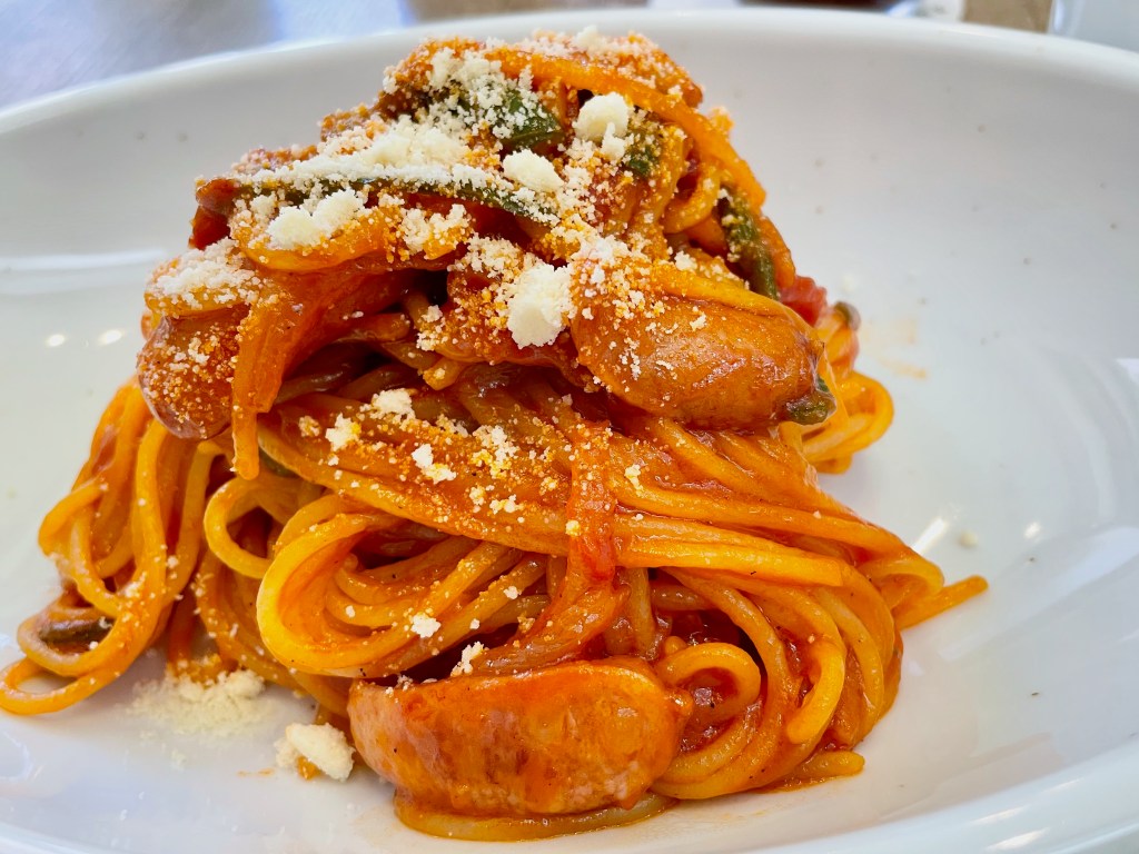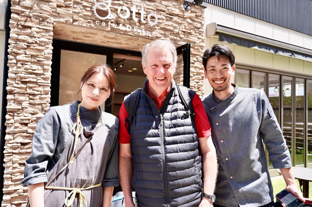 Leaving the mall by a side door, we came onto a small street with an Italian restaurant – Otto’s! It turned out that the cafe is a new business for Ishinomaki, opening in January this year (2025) – very encouraging for the city still in recovery mode. It was lunchtime, so in we went. Another lovely welcome as staff took our cases and put them safely behind the counter before showing us to a table.
