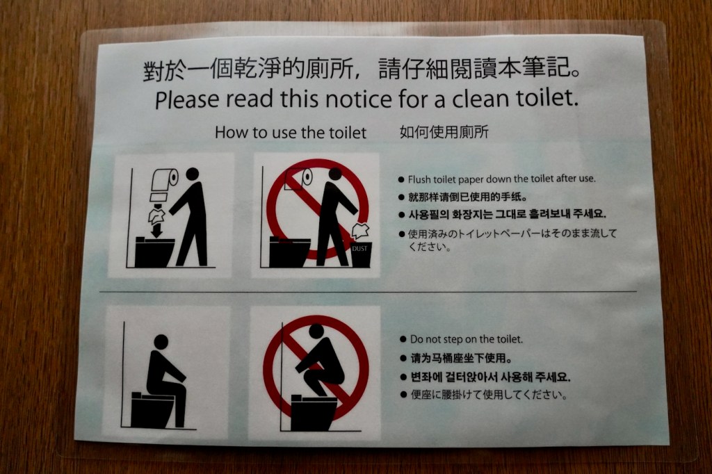 And then there is the Starship of all toilets – Japanese washlets. Smart technology in toileting at its best. I’m sure you’ve all heard of them. Let me assure you, they are as fabulous as they sound! Although, you might need to put in some study before trying them. There are usually many buttons to push for the various functions. Not always with instructions in English. My eldest son, when he first encountered one, hit every button he could while gazing down into the toilet trying to figure it out. Result – his face got a good squirt of water rising up like a geyser from the toilet bowl.