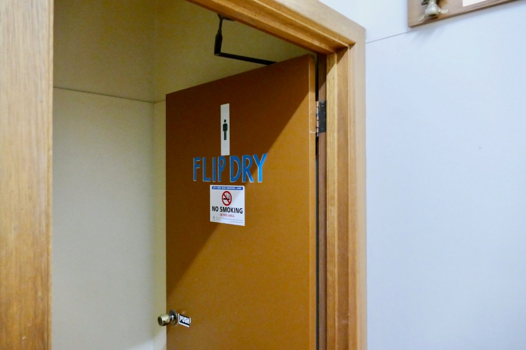 Answer: The men’s because they are likely to have less sit down toilets than the women’s. The sit down toilets probably won’t be functioning, but can be used by lining them with bags supplied in the office emergency kit. Luckily, I never experienced this scenario while living in NZ.