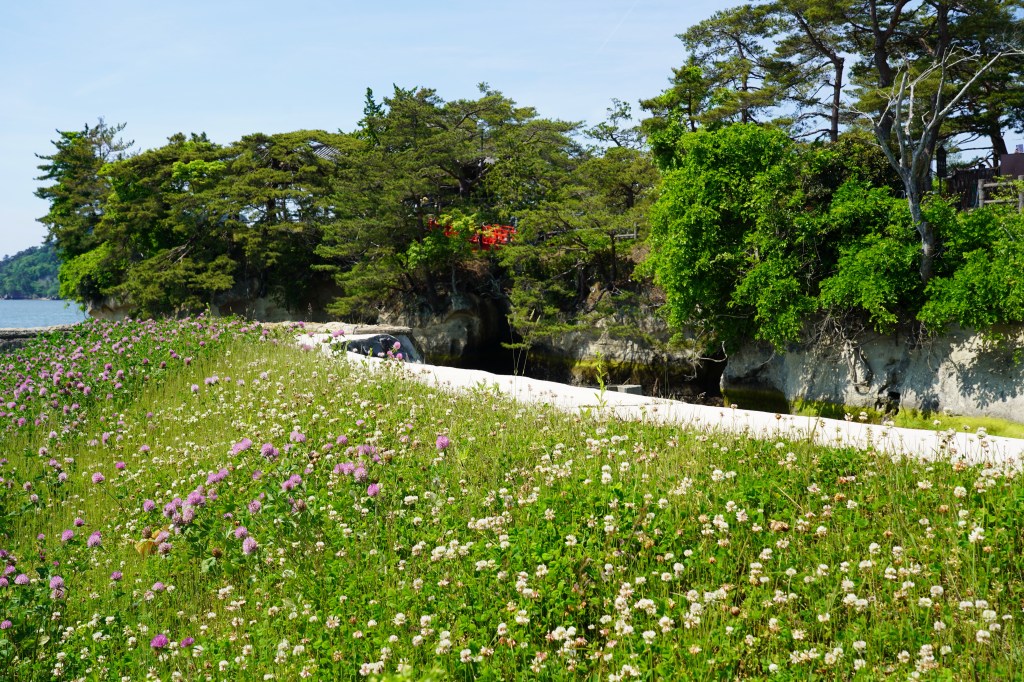 A much bigger island close to town is the beautifully wooded Fukuura Island – a lovely place to ramble and gain great views over the Bay. In Edo times, it was a popular with Samurai elites on sightseeing tours! Date Masamune often visited. The island also has long attracted Buddhist monks for meditation. It wasn’t until the Meiji era (1868-1912) that the island became more accessible to the public. It was developed into a natural park to preserve its beauty and biodiversity, and provide a space for relaxation and contemplation for visitors.
