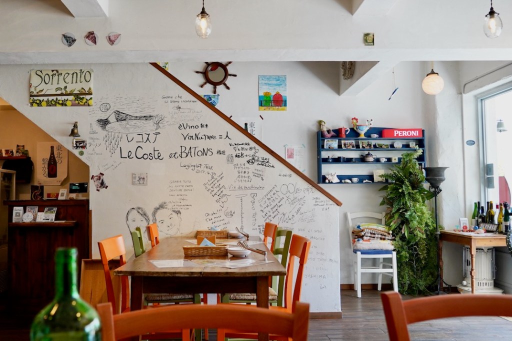 I’m not keen on seafood – so while searching for lunch that didn’t involve oysters we came across our little Japanese Italian gem just outside the Matsushima Kaigan railway station. The menu includes pastas, excellent pizza, good coffee, quality tiramasu and very good cheesecake! And that music! It’s also licensed, so MJ was able to order a nice red. Luckily, we had been walking a lot throughout the morning exploring Matsushima – so there was no ‘put on weight’ guilt with our lunch!