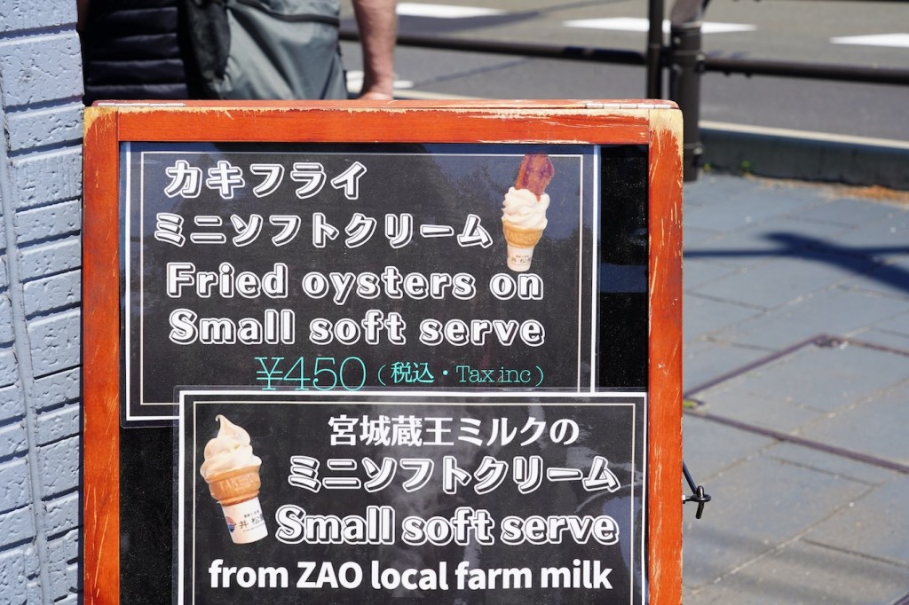 Matsushima’s fame rests not only with its natural beauty, but as a place for fresh oysters and other locally sourced seafood. For oyster lovers, Matsushima is heaven! I even spotted ice-cream topped with oysters!