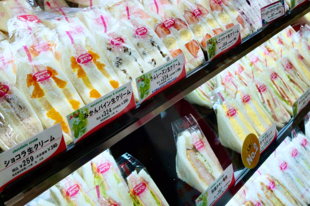 Japanese convenience stores carry an excellent range of quality food and other products. Think fresh fruit salads and super fresh crustless sandwiches – ranging from the usual ham and cheese to fruit fillings – through to meals to go that you can heat up in the store microwave! Egg sandwiches are a culinary delight in Japan.