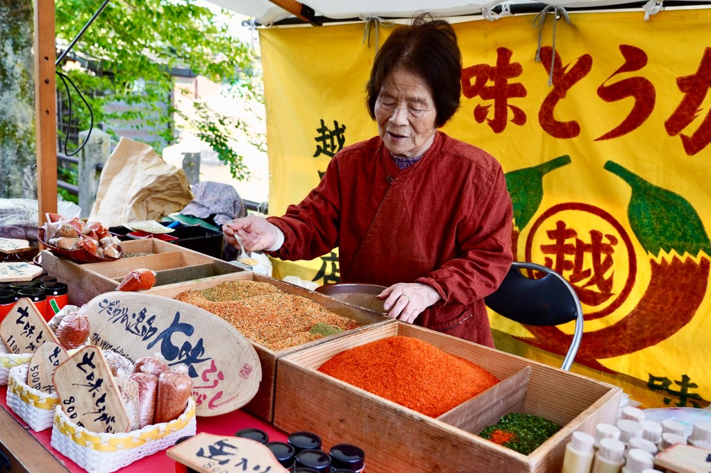 A spice stall at a local market in Takayama – she grinds the spices herself