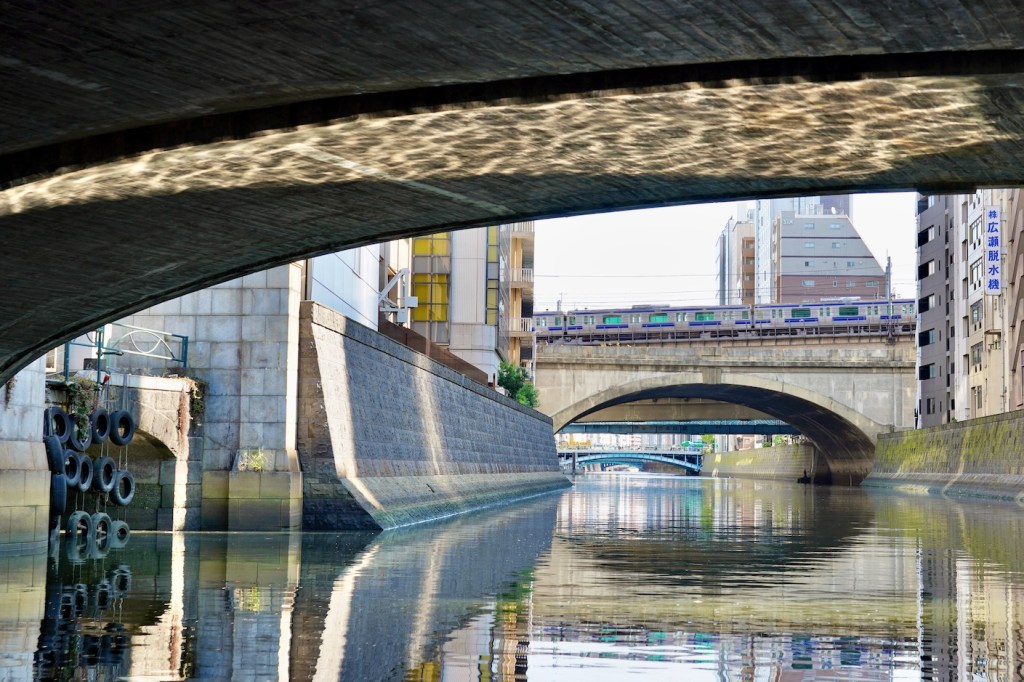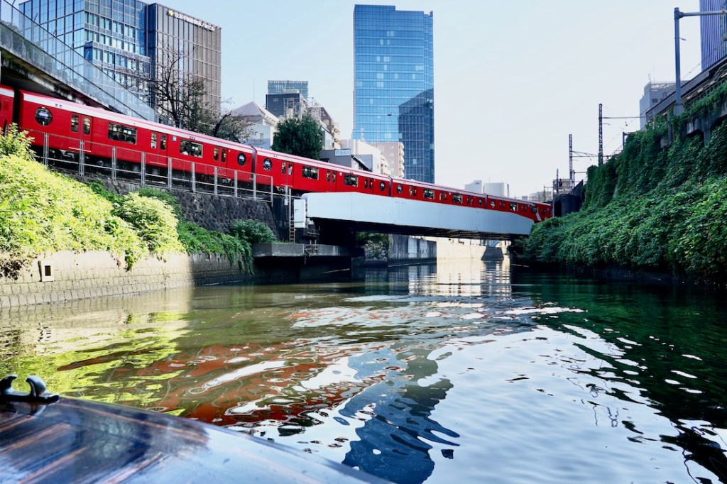 A feature is cruising along the famous Kanda River. Back in Edo times, the Kanda River was rerouted to pass through Ochanomizu and today it runs under the tracks and platforms of Ochanomizu Railway station. You can achieve great views of trains crossing here over the water. In fact, you see a lot of trains darting back and forth as you explore the old river systems.