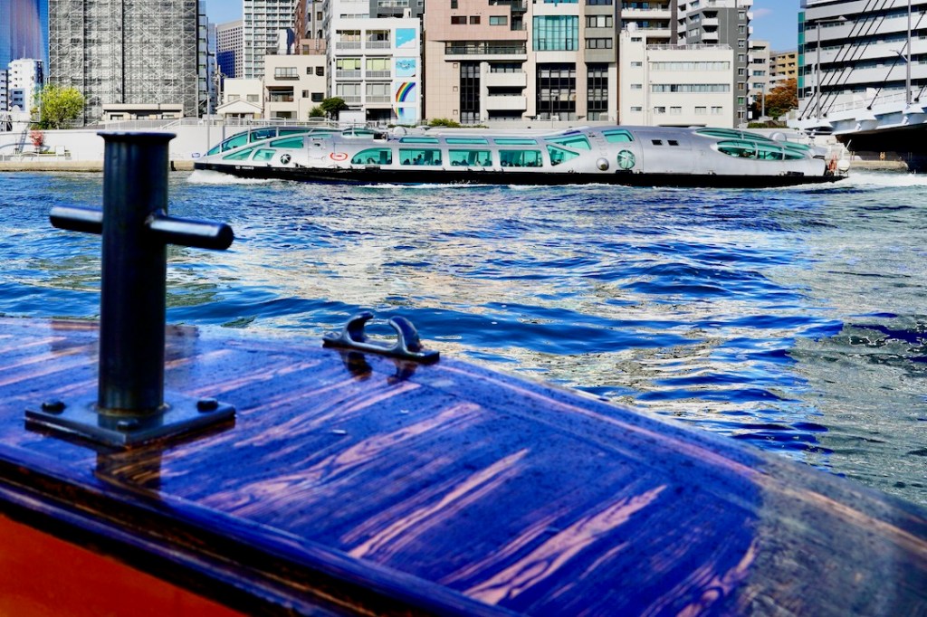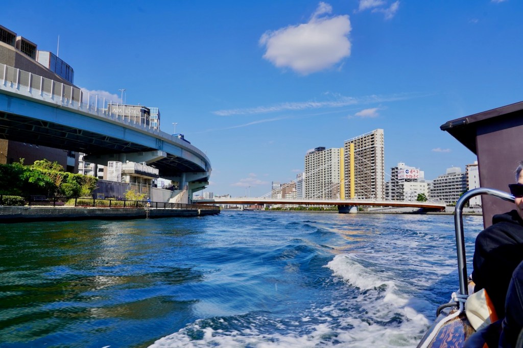 Our cruise eventually brought us out to the beautiful Sumida River – a little choppy because of other boats, but our vessel was well designed to handle it .
