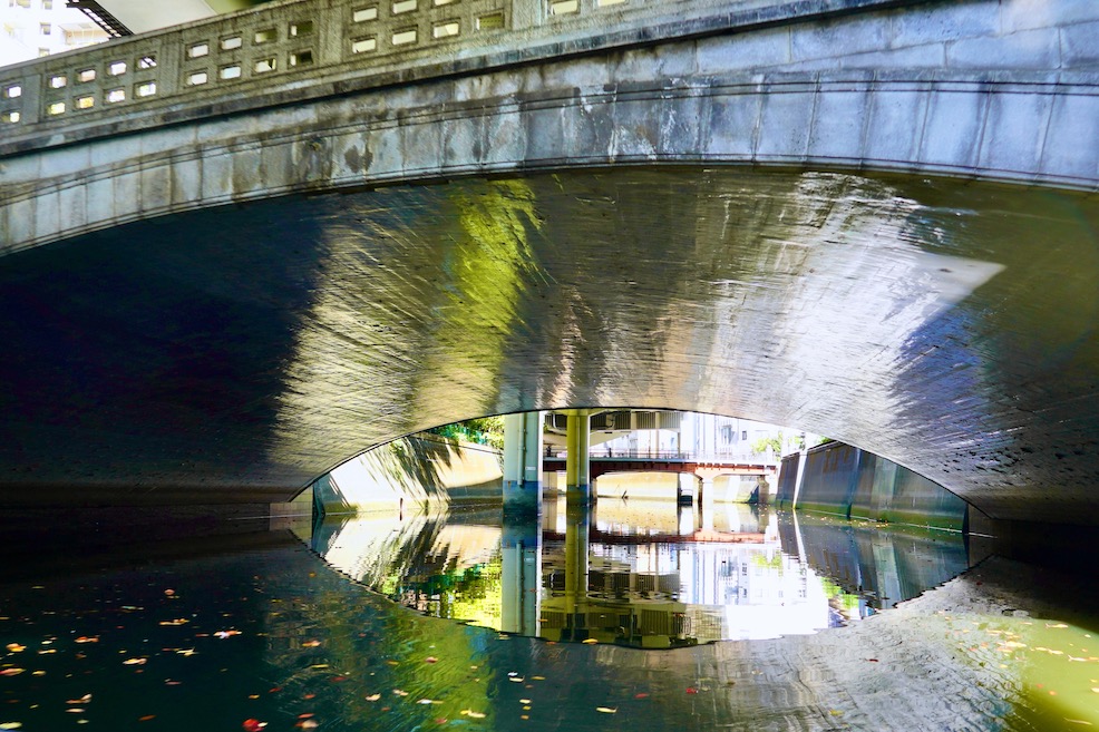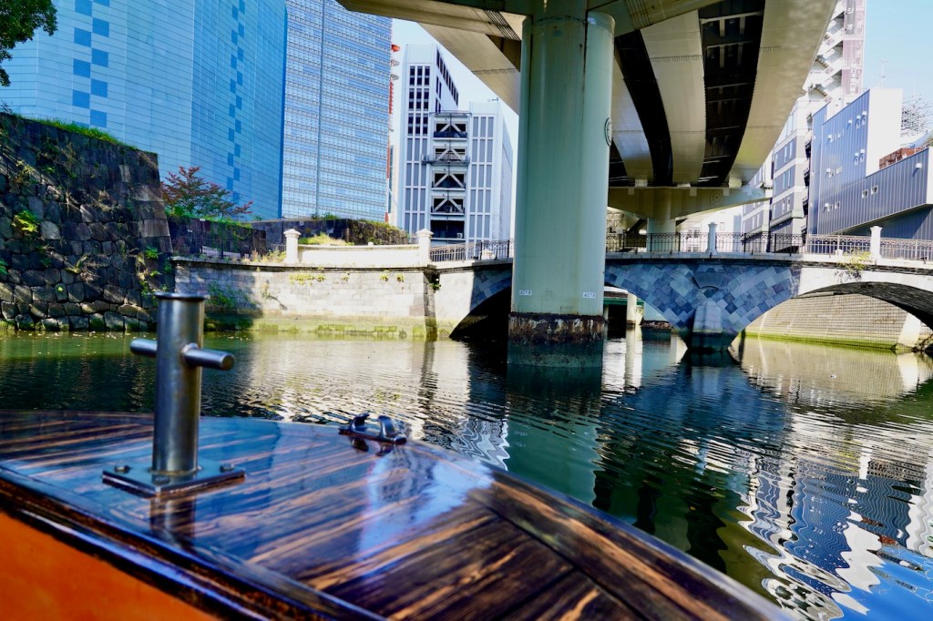 We joined the cruise at the ancient Nihonbashi bridge, a ten minute walk from Tokyo station. The bridge was originally wooden – built in 1603. For centuries it served as the starting milestone from which all distances in Japan were measured. The current 1911 stone bridge is overhung by the elevated concrete Metropolitan Expressway (Shutoko) – a motorway built in the lead up to the 1964 Tokyo Olympics. Locals weren’t happy with how the motorway ceiling over the bridge turned out. Eventually they began campaigning to have the oppressive canopy removed to reopen the bridge and Nihonbashi river to the sky. When I first heard of the campaign, I didn’t think it stood a chance. But finally it’s happening with work now already underway to replace it with a new traffic tunnel under the river, scheduled to open by 2036. The full removal of the elevated motorway is expected by fiscal 2040.