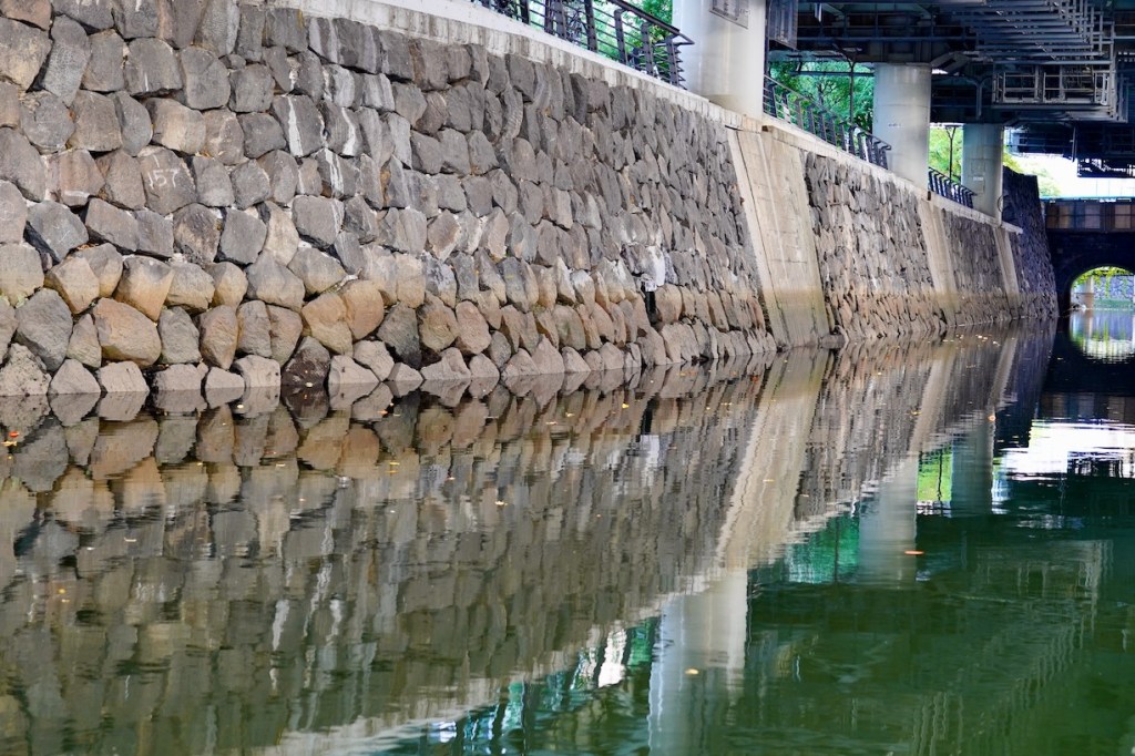 Along the way, we cruised close to some of the ancient stone walls of the outer area of Edo Castle. Some were in their original state – others had been reconstructed using the original stones. Who were the better stone wall craftsman? Definitely the men of the Edo area – their work was so expertly and neatly done – still a work of art today!