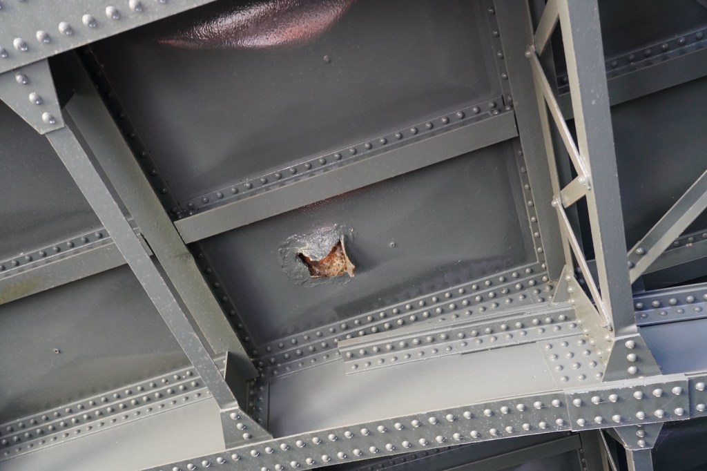On the cruise, you can also see a pockmarked hole – the impact mark left by an incendiary bomb.