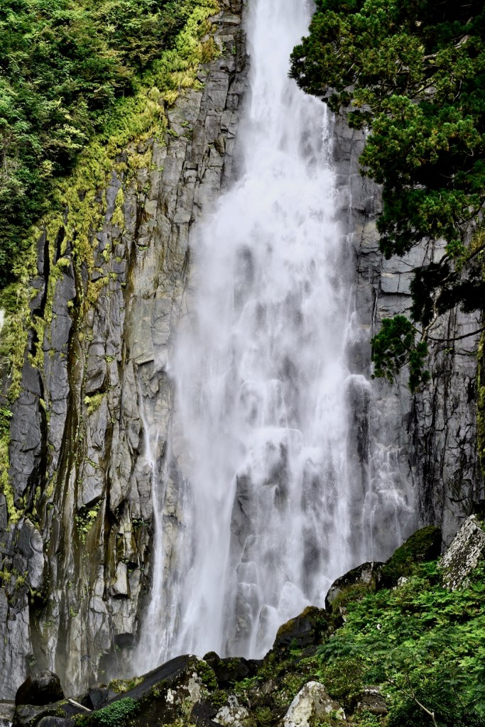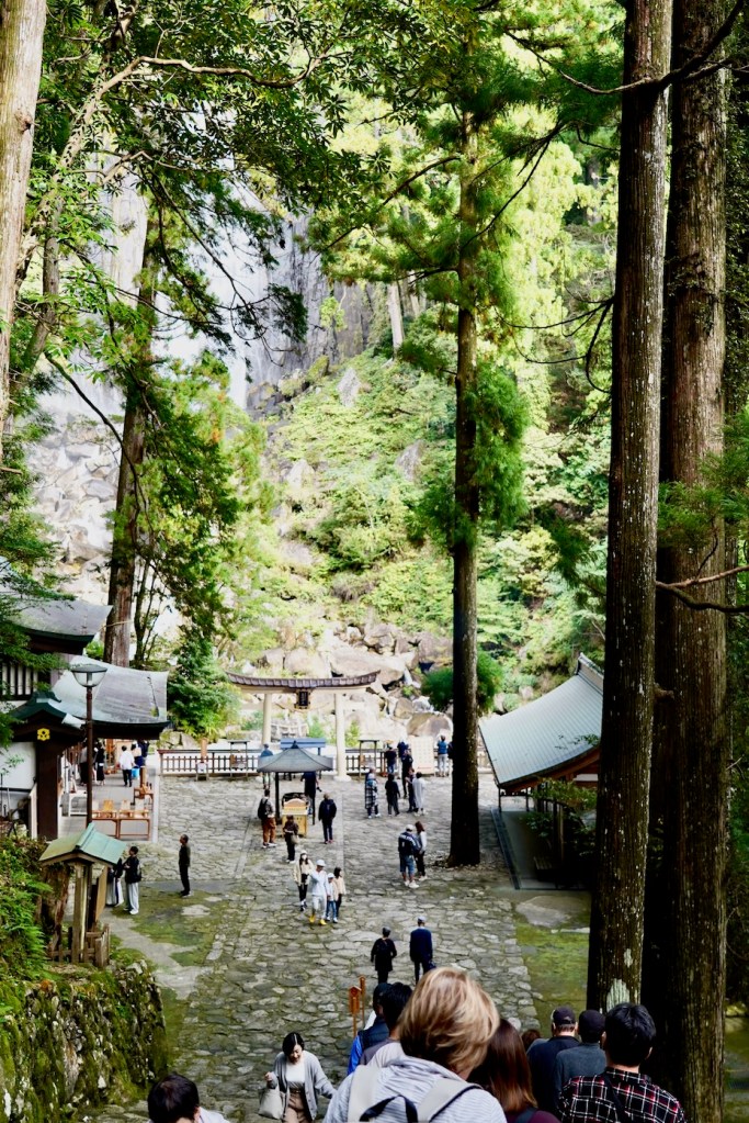 We headed early on the Sunday morning to the bus station adjacent to the railway station, mistakingly buying all day tickets that would have taken us not only to Nachi Falls, but also to some famous temples and shrines in the area. It’s a bargain for most tourists. But my crappy knee meant we needed to restrict ourselves to the Falls. So, we only really needed return tickets there. We were surprised at the number of tourists that emerged so early in the day for the ride, with the bus full by the time we set off. It was a very picturesque half hour bus ride to reach the Falls, hidden within a magnificent ancient evergreen primeval forest.